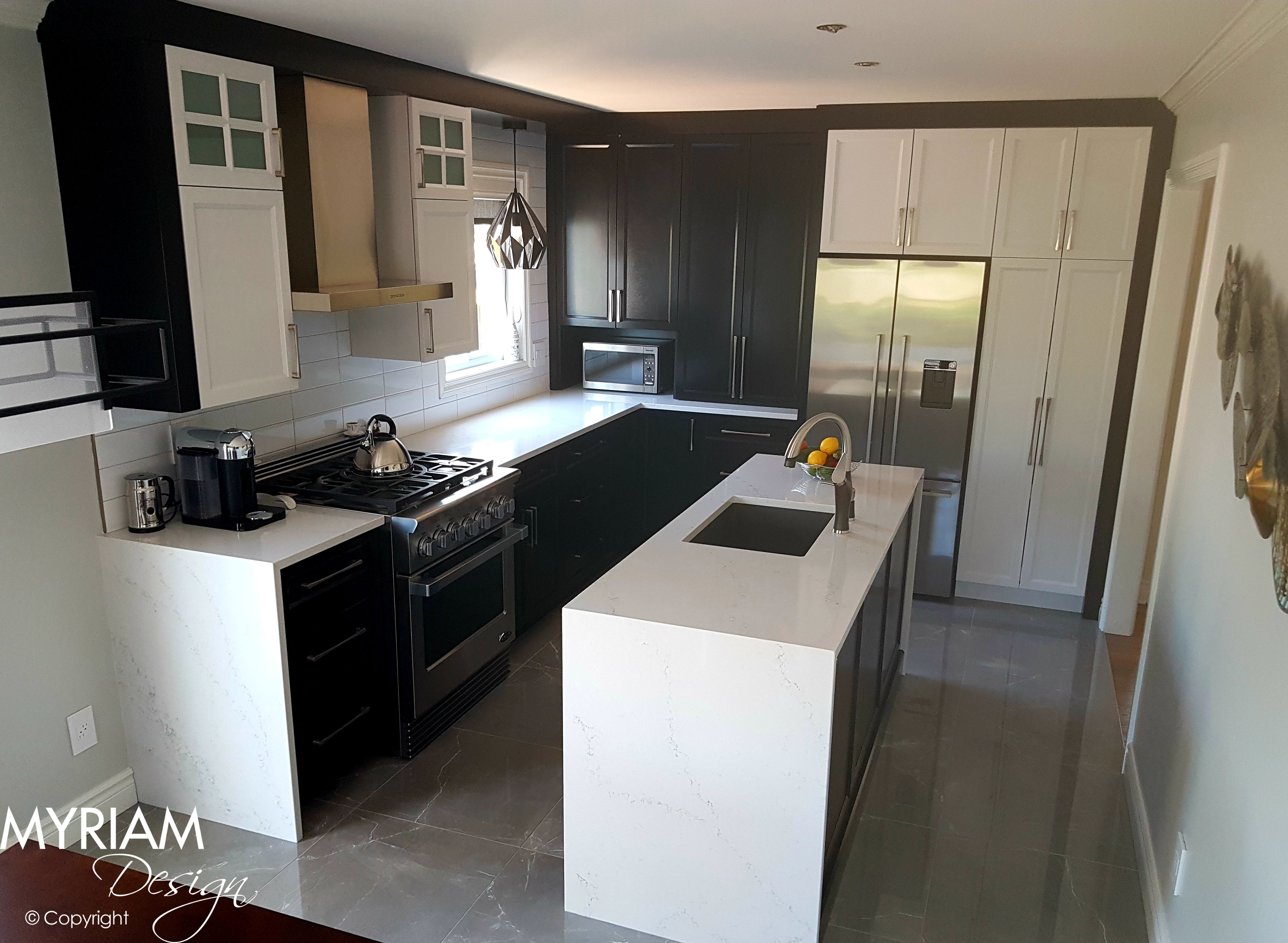 Voici un très bon exemple d’un avant/après d’une cuisine que nous avons réalisée en fermant un angle.